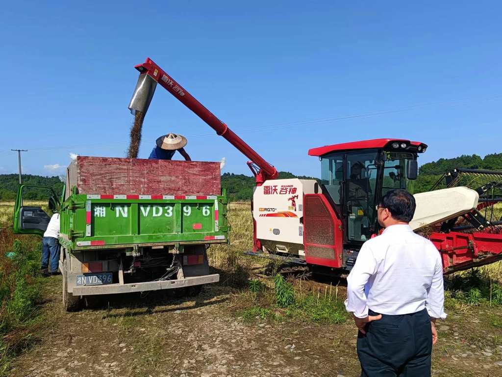 艳阳高照,在杨垅村世宣农机专业合作社,收割机在油菜地里来回穿梭,县农机事务中心高级工程师科技特派员郭金波在现场对机械化收割进行技术指导。“去年由于失误,我们合作社油菜基本没有什么收获,今年得到了技术人员的指导,我们合作社这500多亩油菜,预计今年每亩可产油200斤”李世宣说道。