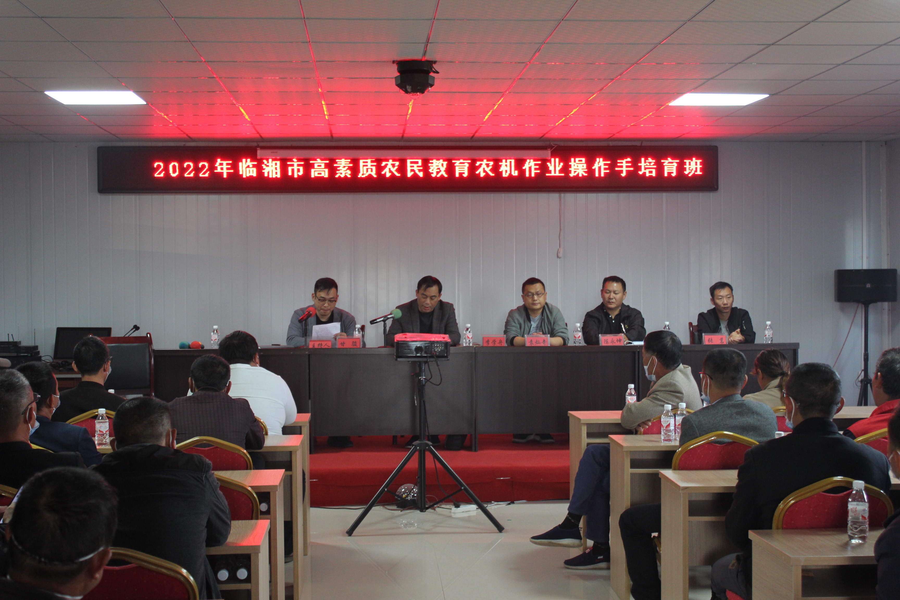 11月9日,2022年湖南岳阳临湘市高素质农民教育农机作业操作手培育班在临湘市坦渡镇助农飞煌农机专业合作社正式开班。培训班由市农业农村局主办、市农业机械化学院承办。市农机技术推广中心主任李学舟、坦渡镇副镇长袁灿奇、市农业农村局科教股股长张茗、市财政局农业股副股长陈永坤出席了开班仪式,各镇(街道)70余名农机操作手参加此次培训。