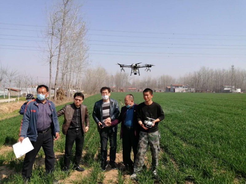 夏邑县农机服务中心组织遥控飞行喷雾机对小麦进行施肥