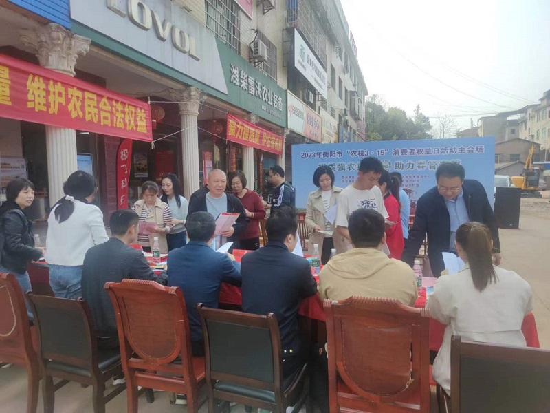 3月15日上午,湖南省衡阳市农业农村局、衡阳市农业技术服务中心,联合市行政综合执法支队和石鼓、蒸湘、珠晖、雁峰区农业农村局,举行“提质强农护农、助力春管春耕”衡阳市“农机3.15”消费者权益日活动。