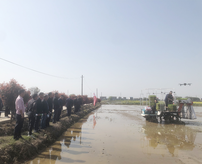 与会人员现场观摩了水稻有序抛秧机作业演示并详细听取了相关负责人介绍。