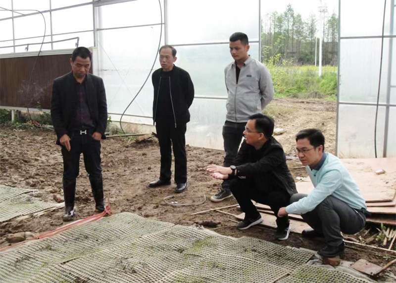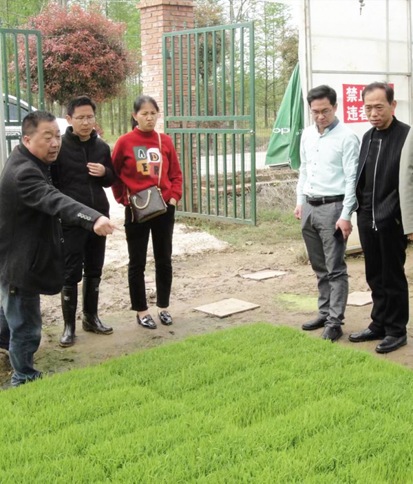 (中心主任叶君、副主任严敬东来到南县嘉穗水稻种植专业合作社荣福村机插秧基地,督导育秧进度和质量 徐建辉 摄)