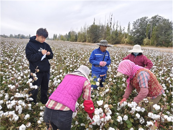 近日,甘肃省农机化技术推广总站技术专家一行4人联合敦煌市农机服务中心开展棉花机械打顶、化学控制、人工打顶3种打顶模式对比试验采收环节数据采集工作。按照试验方案,技术人员现场统计了3种不同打顶模式下的试验地块棉株数、结铃数、单铃重等关键试验指标,通过对棉花的测产评估、棉花样品的分类采集送检,结合前期田间管理测定数据,将形成完整的试验报告,分析不同打顶方式对棉花生长、产量及最终品质的影响。