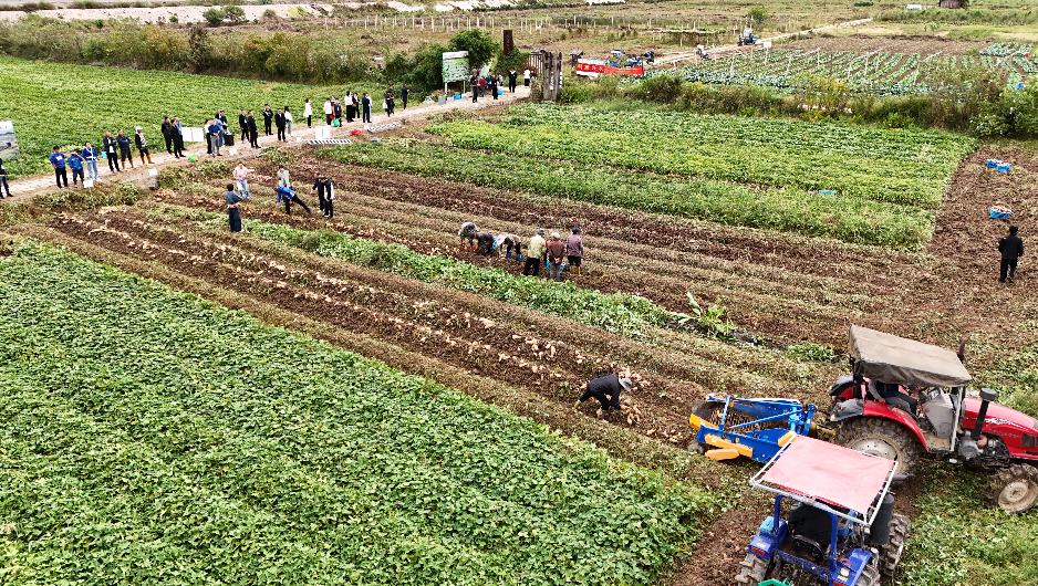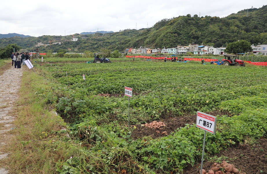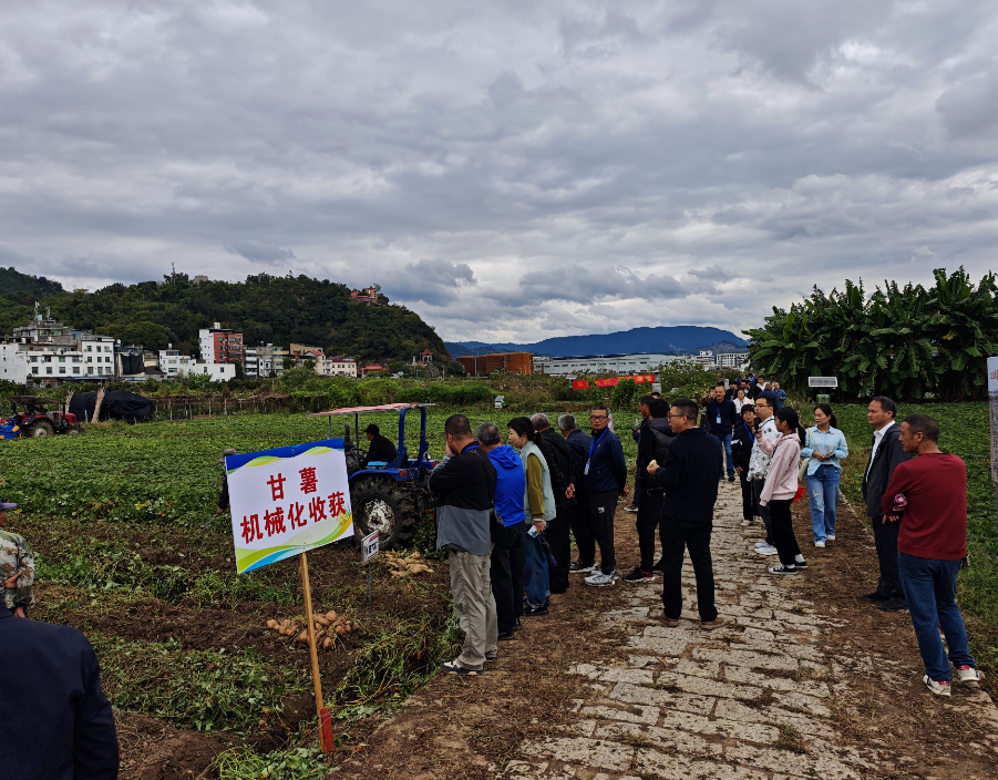 同时,省市县乡村五级联动,省市专家、市县两级科技特派员、县新型农业主体辅导员、县农业农村局各股站骨干专家、乡镇农技业务干部、村主干等现场交流分享甘薯高产栽培、甘薯有机物料还田、秸秆还田、病虫害绿色防控和统防统治等实用经验,并与农户互动答疑,现场气氛热烈。古县富民农机专业合作社技术人员介绍种植经验、田间管理经验、机械化生产技术及农业生产社会化服务开展情况等(同步)。参会人员形成共识:无人机统防统治等农业生产社会化服务需求趋势日益增强,其在农药化肥减量提质增效、节约资源、降低成本、保障农产品安全等方面进一步发挥不可替代的作用。农业生产全程机械化是农业生产社会化服务的前提、基础和保障,农业社会化服务不仅提高生产效率、节省劳动力、节约成本,还能够很大程度上解决人口老龄化导致的农业生产劳动力缺失这一严重社会问题,同时,农机社会化服务还有助于推动撂荒地整改,提高土地资源利用率等国家粮食安全战略实施。最后,参会代表们共同开展霞浦县2025年农业主导品种、主推技术现场推介暨甘薯新品种收获品鉴活动,干群深度交流互动,共同体验甘薯大丰收。