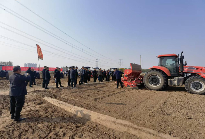 为积极应对今秋连续阴雨天气带来的不利影响,全面落实山东省农业农村厅“今年小麦怎么种”关键技术,全力打好小麦抗湿播种“攻坚战”,最大限度提高播种质量,为明年夏粮丰收打下坚实基础,11月4日,山东省“十百千万”农机推广大行动聊城市冠县小麦精量播种机械化现场演示活动举办。省、市农机推广站技术专家,冠县农业农村局工作人员以及冠县各乡镇(街道)分管农机的负责人、农机合作社代表、农机大户代表、镇村干部等共100余人参加演示会。