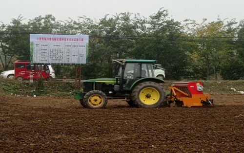 在尚村镇临川寺村开展小麦宽幅沟播机械化作业对比试验