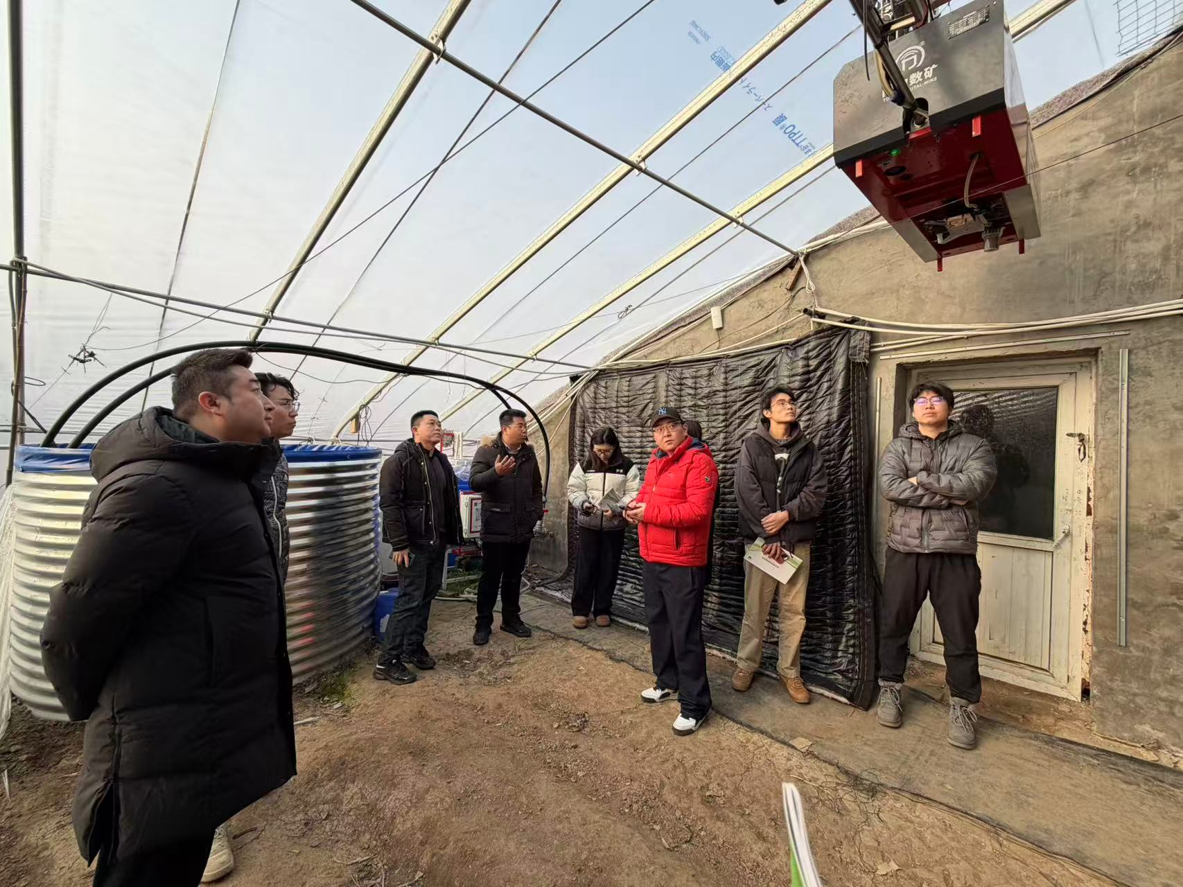 一是雾之丰顶部植保打药设备,组织山东雾之丰智能农业装备有限公司提供2台顶部植保打药设备,分别在银黄绿色农业生态园、兴颜草莓种植专业合作社进行安装,现场听取了企业关于设备的技术介绍、观看了操作演示。二是同力数矿植保打药设备,现场研究对接了同力数矿植保打药机器人的青锋项目试验安排,下一步将结合种植茬口安排性能和工况试验。三是中国农业大学巡检机器人。观摩了中国农业大学工学院刘平义专家团队在御享农场试验示范的巡检机器人,该设备在温室环境中行走、爬坡等移动能力稳定,能够在作业过程中保持平台平稳,展现了在复杂设施环境下进行自主巡检与监测的技术潜力。