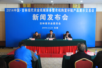 3月21日,为期3天的2014中国•吉林现代农业机械装备暨农机购置补贴产品展示交易会在长春国际会展中心开幕,并召开新闻发布会。省农委副主任于文波在新闻发布上将“2014中国•吉林现代农业机械装备暨农机购置补贴产品展示交易会”和近年来我省农业机械化发展的基本情况、今年落实农机购置补贴政策的意见向各位做了简要介绍。