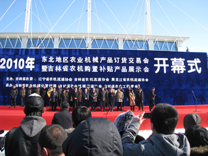 2010年3月17日东北地区农机产品订货交易会暨吉林省农机购置补贴产品展示会在长春市召开。本次展示会由吉林省农业委员会主办,是东北地区规模最大的农机展示盛会。来自全国300余家农机生产企业前来参展。展出的农机产品包括耕整地机械、种植施肥机械、田间管理机械、收获机械、收获后处理机械、排灌机械、畜牧机械、动力机械、农用运输机械、农田基本建设机械、设施农业设备等11个种类,1000多种产品。展会设室内、室外共10个展区,占地4万余平方米。展期从3月17日至19日共三天,展会特设农机购置补贴政策咨询台,现场解答农民的提问。展会期间,农民可现场购买补贴机具。现场购机的补贴机具设定为50马力以上轮式拖拉机、水稻插秧机、水稻收获机、玉米收获机及农机具5类产品。全省各市(州)、县(市、区)农机行政部门组织农民参观、选型。预计展会期间参观人数将达到10万人次以上。这次展会是当代中国现代农业装备产品的集中展示,是农机科技创新的交流平台和农民自主选择、现场购机的交易大集,也是我省启动2010年农机购置补贴政策的一个良好开端。