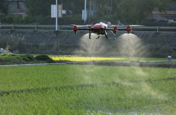 植保无人机具有作业高度低,飘移少,可空中悬停,无需专用起降机场,旋翼产生的向下气流有助于增加雾流对作物的穿透性,防治效果高,远距离遥控操作,喷洒作业人员避免了暴露于农药的危险,提高了喷洒作业安全性等诸多优点。