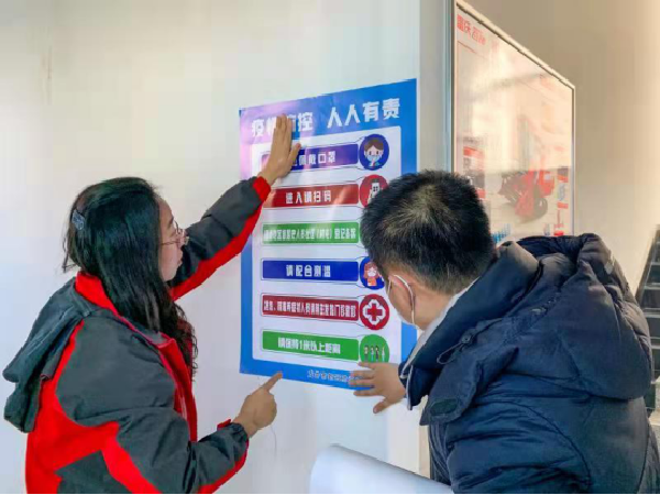一是将《抗议疫情 人人有责》张贴在每一个小区,门市的门上,按照网格化管理模式,通过微信、电话、入户等形式宣传新型冠状病毒感染的肺炎防治知识,逐户,逐人全面排查,重点以疫情高风险地区人员,做到不漏户、每户不漏人。同时,引导居民尽量不外出、不聚餐,不到人多拥挤和空间密闭的公共场所,如必须外出,务必佩戴口罩,回家后用酒精消毒等卫生常识,切实做好个人卫生防护,增强体质和免疫力。让居民更好地了解新型冠状病毒;提醒居民如果家里有高风险地区人员主动到社区进行登记。出现紧急情况随时报告。