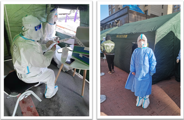 王 楠:居家隔离期满后因流动限制不能返回长春,主动到家庭所在社区报到,协助社区为居家隔离人员送中药,协助医护人员为行动不便的老弱病残人员上门做核酸检测,参与社区公共区域消杀和电话访问等工作。