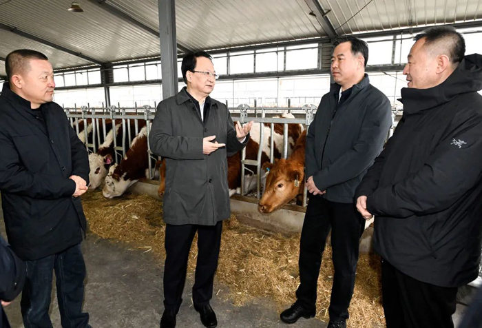 这是景俊海第五次到复兴村调研,他首先走进肉牛养殖园。看到肉牛数量进一步增加、经营能力不断增强,景俊海给予充分肯定,鼓励养殖园在做大养殖规模的基础上,继续沿着产业链向屠宰加工等下游方向发展,带动更多农民群众就业增收。