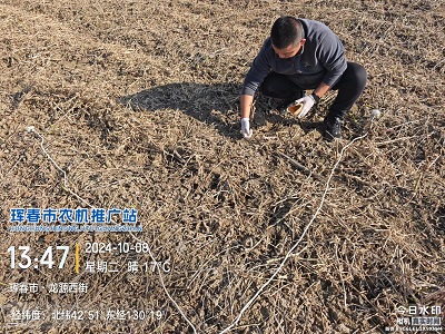 10月8日,珲春市农机推广站组成两人工作小组,分别在珲春市英安镇和板石镇两个乡镇开展机收损失率测定工作。