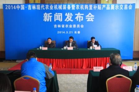 3月21日,为期3天的2014中国•吉林现代农业机械装备暨农机购置补贴产品展示交易会在长春国际会展中心开幕,并召开新闻发布会。省农委副主任于文波在新闻发布上将“2014中国•吉林现代农业机械装备暨农机购置补贴产品展示交易会”和近年来我省农业机械化发展的基本情况、今年落实农机购置补贴政策的意见向各位做了简要介绍。