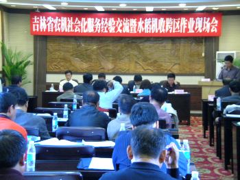 由省农业机械化管理局主办,省农业机械管理总站、九台市农业机械管理总站和榆树市农业机械管理总站承办的吉林省农机社会化服务经验交流暨水稻机收跨区作业现场会于9月26日在长春市召开。省农委副主任陈巳,省农机局长成洪、副局长翟延华,省农机管理总站站长艾清瑞及省直其他各农机单位的领导、各市(州)农委(农业局)分管农机的局长和农机科长、各县(市)农机局长及部分农机服务组织和农机大户的代表及新闻单位的记者共100余人参加了会议。 本次会议设有2个分会场。9月26日,水稻机收跨区作业现场会在九台市西营城镇榛秸泡村召开,与会人员参观了该村农机大户李雨田的绿色水稻精优米业有限责任公司,观看了水稻机收跨区作业现场,来自省内外10家农机生产企业的4台全喂入、6台半喂入及1台割晒机分别进行了水稻机收演示,机收作业场面宏大,与会代表和当地群众反响强烈,对水稻机收表现出了浓厚的兴趣,并有部分群众当场与厂家签订了购机意向。下午,代表们参观了榆树市五棵树镇合发村农机合作社,听取了合作社董事长王斌对合作社发展情况的简要介绍,参观了合作社的办公场所和机械化装备。 9月27日,全省农机社会化服务经验交流会在长春春谊宾馆召开,会议由成洪局长主持,陈巳副主任发表重要讲话。他指出,开展农机社会化服务是实现农业机械化的重要途径,是适合我国国情的农机化发展方向和道路。“十五”以来,我省始终把农机社会化服务工作作为重点工作来抓,从强化服务入手,通过观念创新、体制创新、技术创新和管理创新,不断加强农机服务体系建设,积极推进了农机服务市场化和社会化进程。他强调,根据国家关于农机社会化服务的发展方向和总体要求,今后一个时期我省农机社会化服务的发展思路是,一要继续抓好“四个一”工程,即抓好全程机械化示范区、区域性农机站、股份制农机化生产合作社和农机作业公司(或农机租赁服务公司)工作,二要重点抓好农机区域站建设,三要引导新型服务组织的发展,四要积极开展跨区作业服务,五要突破机械化作业的关键环节,六要尽快完善网络信息服务体系。要正确把握形势,转变观念,以科学发展观为指导,全面推进我省农机社会化服务快速发展,为实现农业机械化、建设社会主义新农村做出新的更大的贡献。 会上,榆树市农机总站、五棵树镇合发村农机合作社、靖宇县农机局、柳河县希望租赁公司、九台市农机大户、敦化市农机作业协会及双阳区双何农机服务有限责任公司的代表做了典型发言,分别介绍了各自在农机社会化服务体系建设和发展中所取得的成功经验,给与会代表以极大的鼓舞和鞭策。